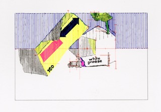 Each sheet was generated by some rule-based methods of placing 'party objects', the shoes facing them, and paths between the shoes. The text of the party objects was randomly selected from a corpus of 'things people desire' that I'd generated a year or so before via natural language processing of all the prose in Project Gutenberg.
