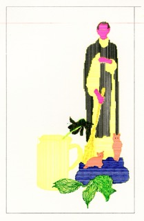 A series of still lives drawn using only the up/down/left/right/pen-up/pen-down buttons of a modified hp7475a pen plotter. 2022.